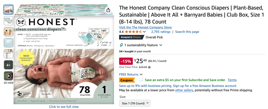 가격도 괜찮고, 이 기저귀로 정착했으면 아마존에서 구독해서 구매하는게 가장 저렴할 것이다.